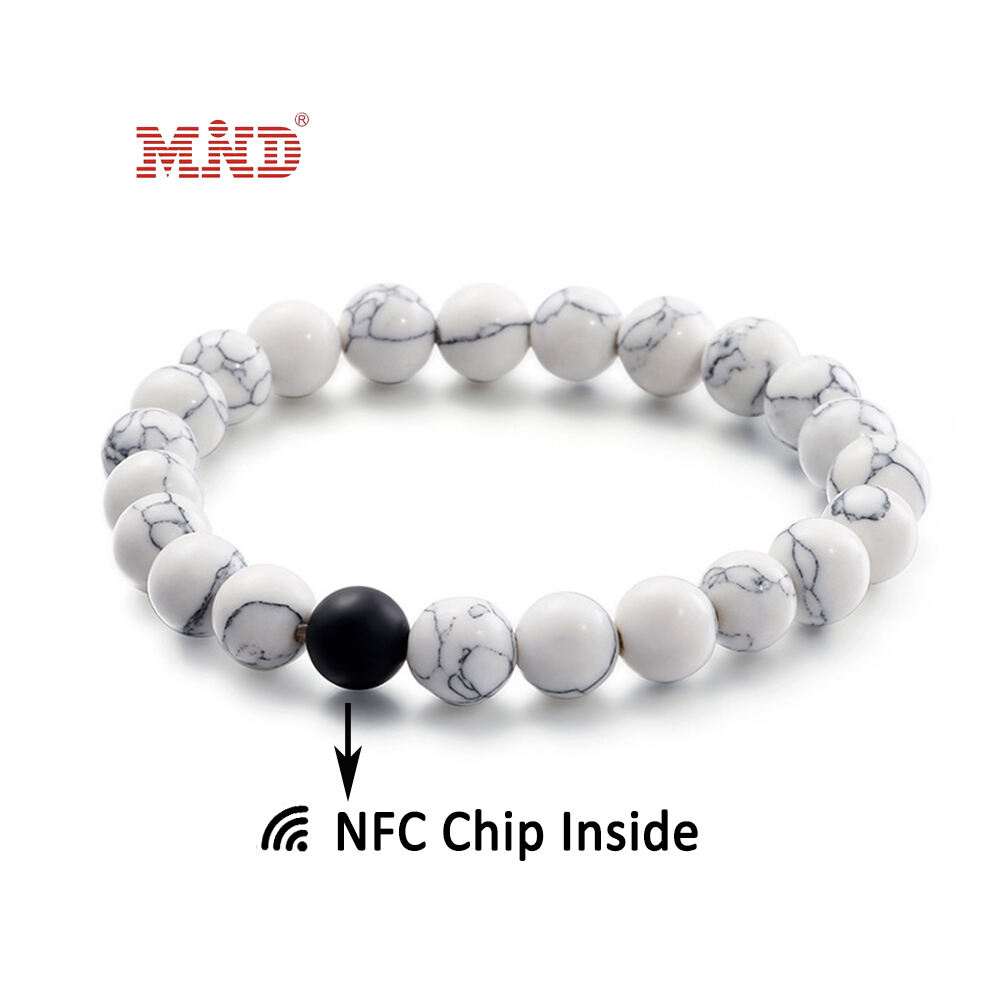 يستخدم هذا السوار ذو تقنية NFC خرزة صغيرة بقطر 12 مم فقط. وتتميز الشريحة الداخلية بتصميم خاص يسمح بمسافة قراءة تصل إلى 2-5 سم. ويوفر حساسية عالية، ويحل مشكلة المسافات القصيرة للقراءة التي توجد غالبًا في منتجات NFC صغيرة الحجم. ويتميز سوار الخرزة بتقنية NFC بأنه صغير الحجم، أنيق، ويمنحك إحساسًا بالجودة العالية.