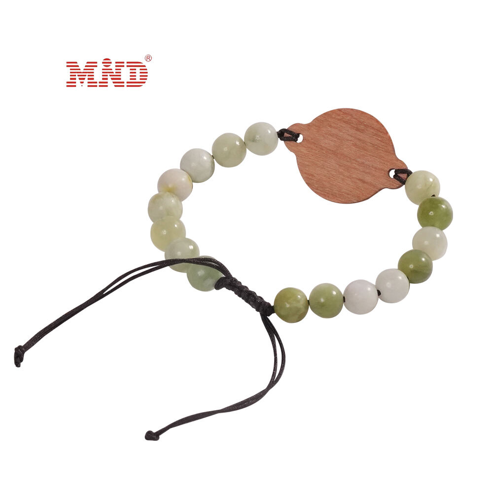 Beaded RFID wristbands are made from different kinds of RFID tags with wood, PVC, acrylic, silicone materials. Inside can be embedded with RFID and NFC chips.